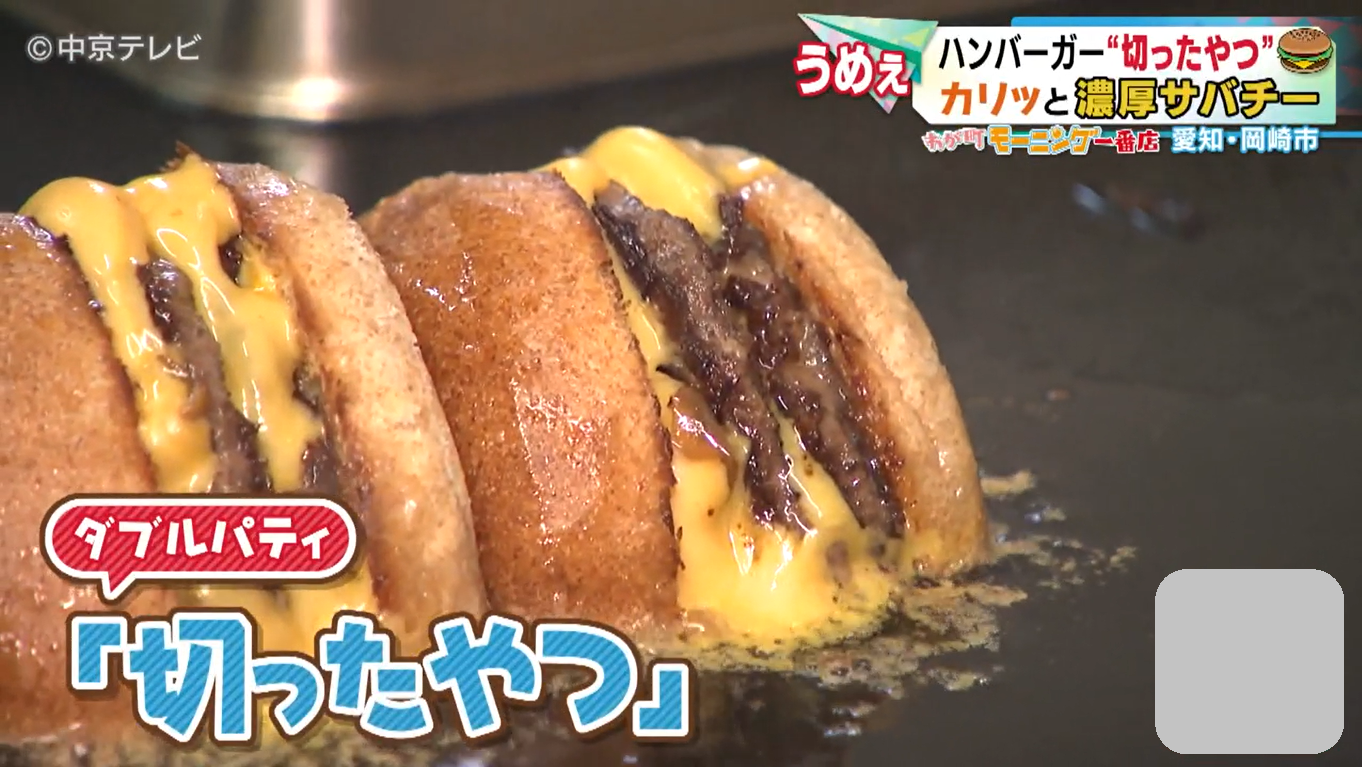 続いて登場したのが、朝から食べられる看板メニュー「切ったやつ ダブルパティ」(2,500円)。国産牛100%のパティとチーズを、全粒粉入りのバンズでサンド。