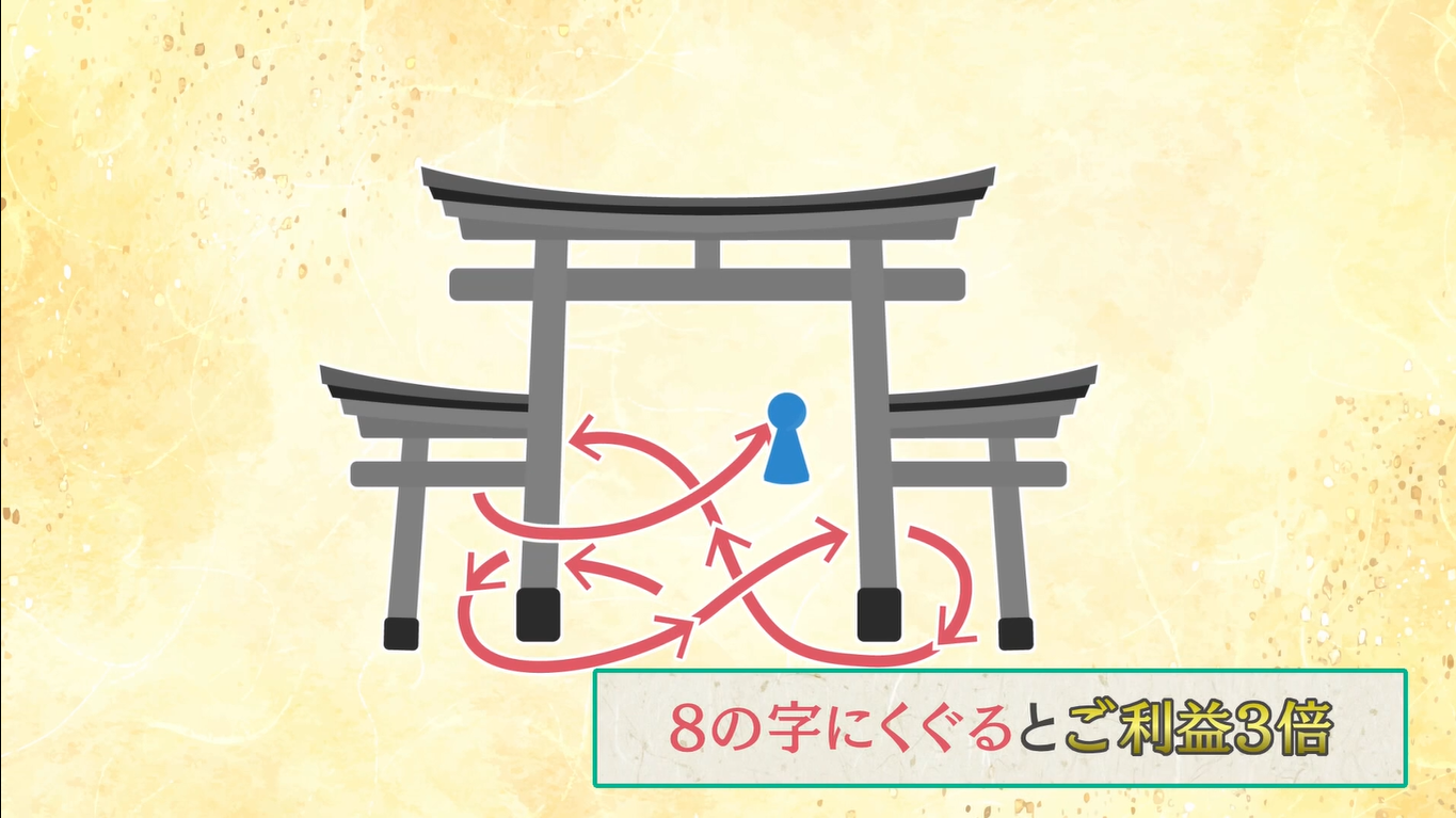 そして見逃せないのが、鳥居が3つ重なったような、特徴的な形の「三輪鳥居」。“8の字にくぐるとご利益が3倍になる”と言い伝えられているそうです。