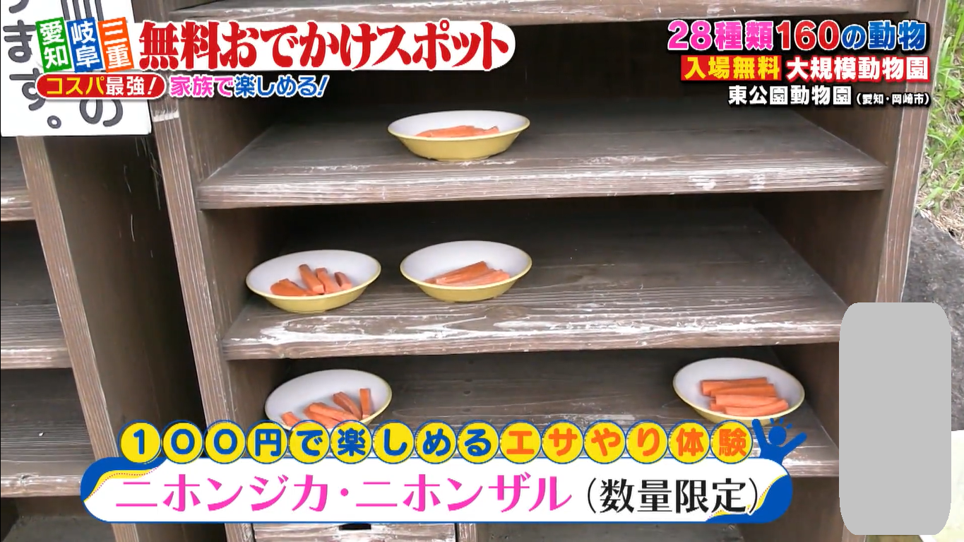 さらに、数量限定でニホンジカやニホンザルへのエサやりも可能で、100円という優しい値段設定にも驚き!子どもの初めての体験にもおすすめです。