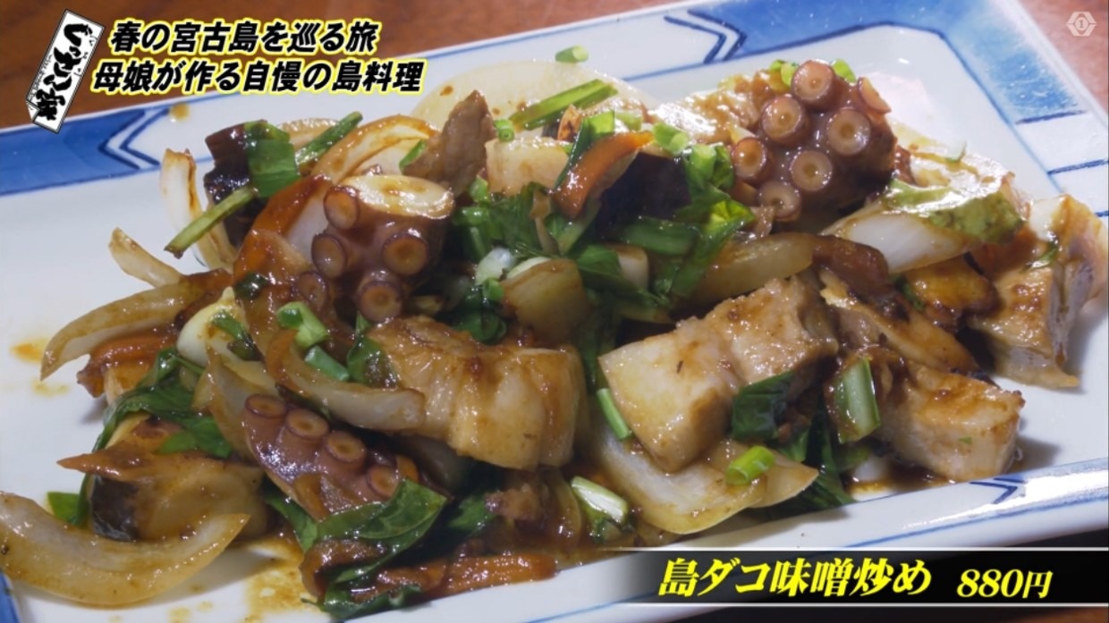 さらにぐっさんの大好物、宮古島のタコを使った「島ダコ味噌炒め」(880円)も!
