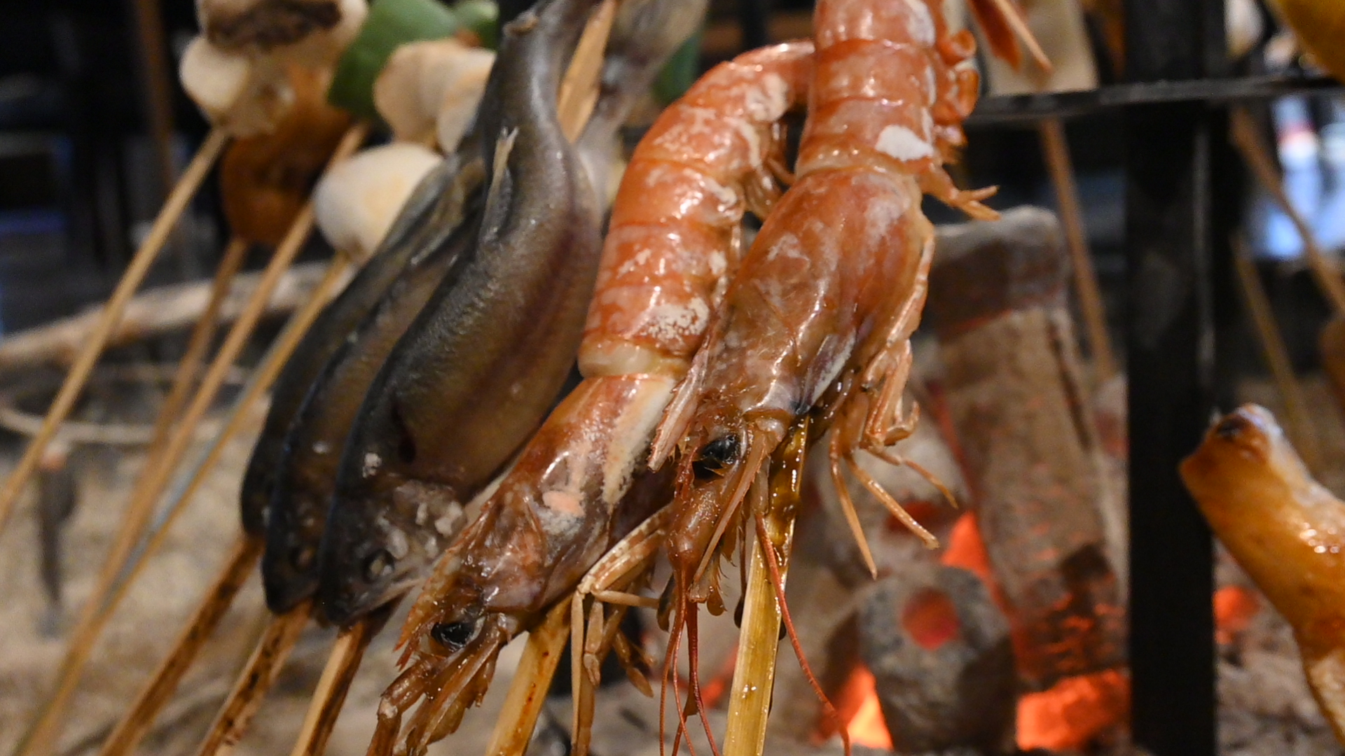 ちなみに、夜は囲炉裏料理を味わえる貸切プランも展開。囲炉裏を使った、エビや魚など串焼きの他、鍋料理を味わうことができます。
