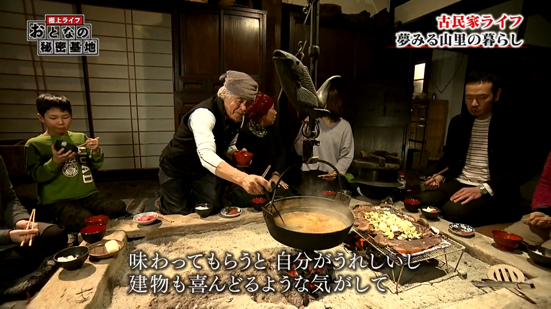 客人たちと会話を楽しみながら、囲炉裏を囲んで夕食タイム。そんなに団らんに、小林さんは「(食事を)味わってもらうと、自分がうれしいし、建物も喜んどるような気がする」と笑みを浮かべます。