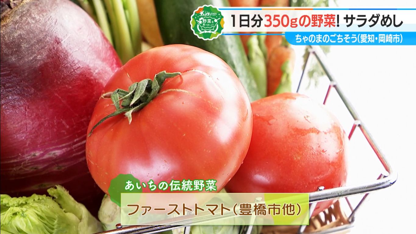 ベビーリーフや紅芯大根、菜の花など15種類の野菜が盛られているなか、注目したいのは「トマト」。みずみずしくて、とにかく濃い“ファーストトマト”は、愛知の伝統野菜のひとつ。昔ながらのトマトの味を楽しめます。