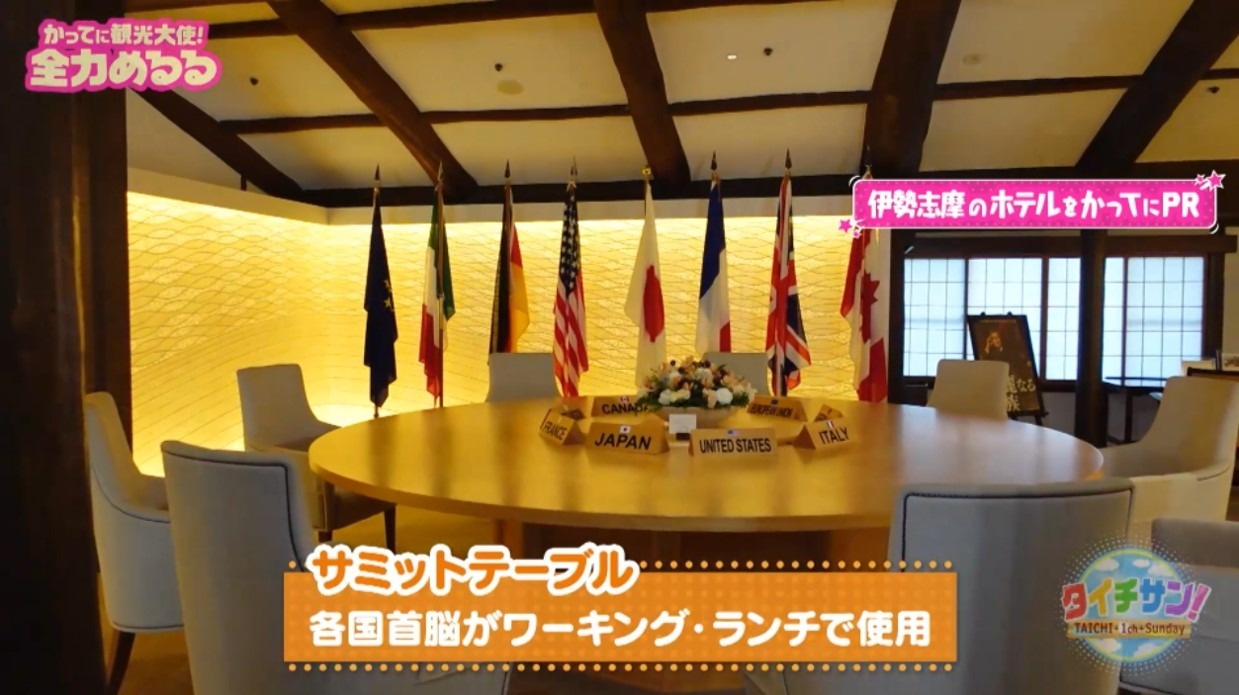 2016年に開催された「伊勢志摩サミット」で各国首脳がワーキング・ランチの際に実際に使用した大テーブルが展示されているんです。