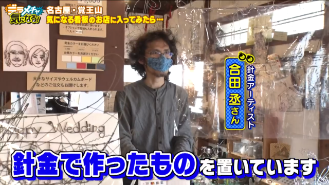 「針金細工 八百魚」を営んでいるのは針金アーティストの合田さん。オープン当初から18年にわたってこの場所で店を続けている、まさに「覚王山アパートの主」です。