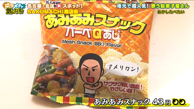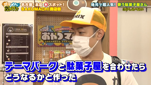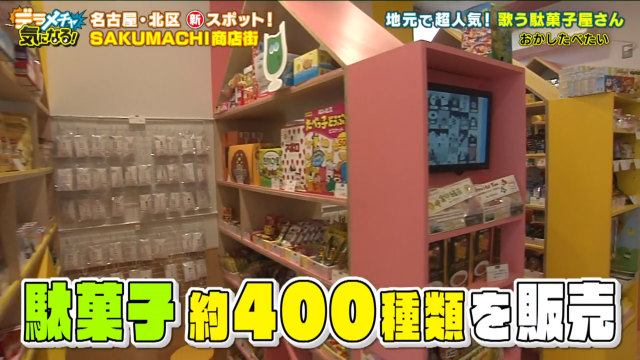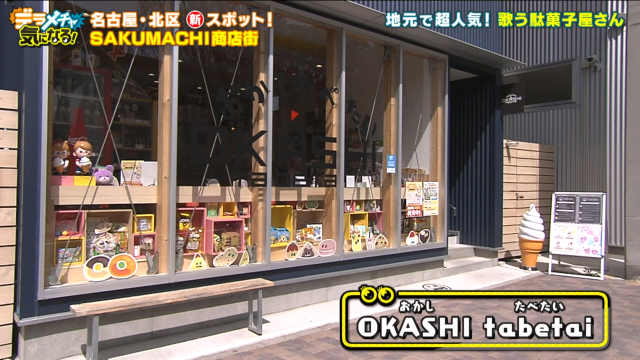 魅力的なお店が並ぶSAKUMACHI商店街。二人が2軒目に訪れたのは、地元の子供に人気という歌う駄菓子屋さんOKASHItabetai」です。