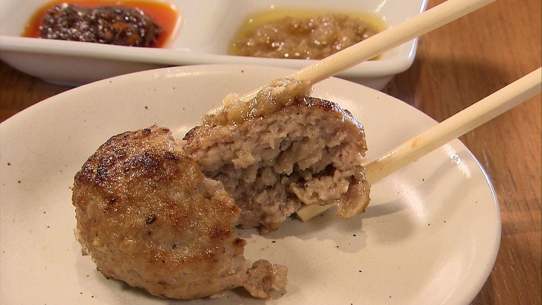 続いては、黒毛和牛に岩手のブランド豚・白金豚(はっきんとん)を加え、塩麴でアクセントをつけた『格之進 金格』を、細かく刻んだショウガとネギ油を合わせた生姜ジャンでいただきます。「ハンバーグをショウガで食べたことがないんで、どんな味がするんやろ」と誠子。