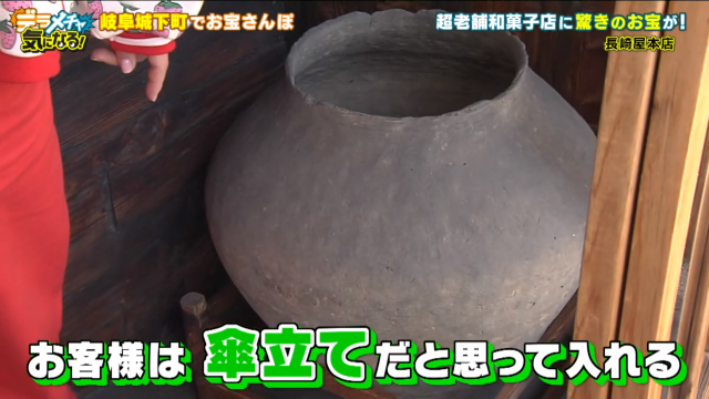 もちろん、そんなとびっきりの老舗にはお宝がゴロゴロ。1000年前ぐらいに作られたという壺は、考古学を学んでいた先祖が発掘してきたもの。なんと、お客さんが傘立てだと思って傘を入れてしまうそうです。