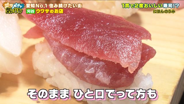 そんな「にほんのうみ」でウワサとなっているのは「1貫で2度美味しい」という奇想天外なお寿司。それはなんと1貫にネタが2枚乗っている贅沢なお寿司でした。