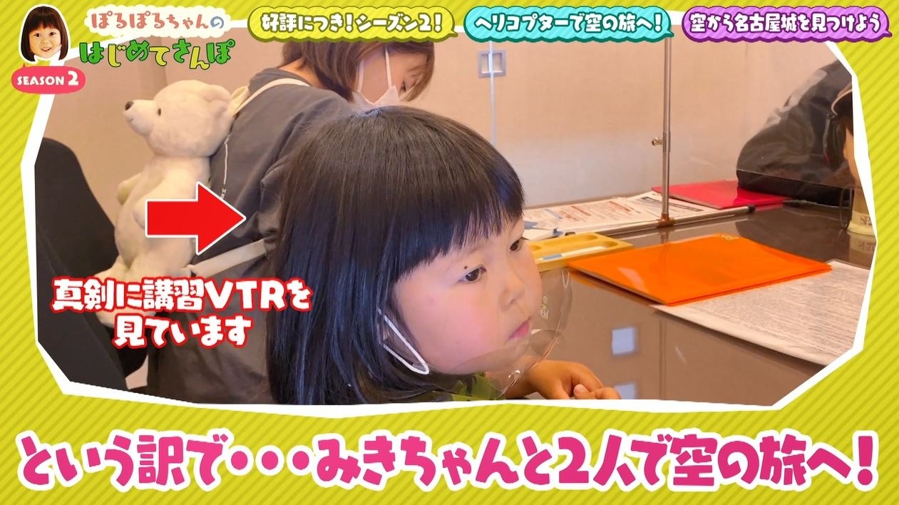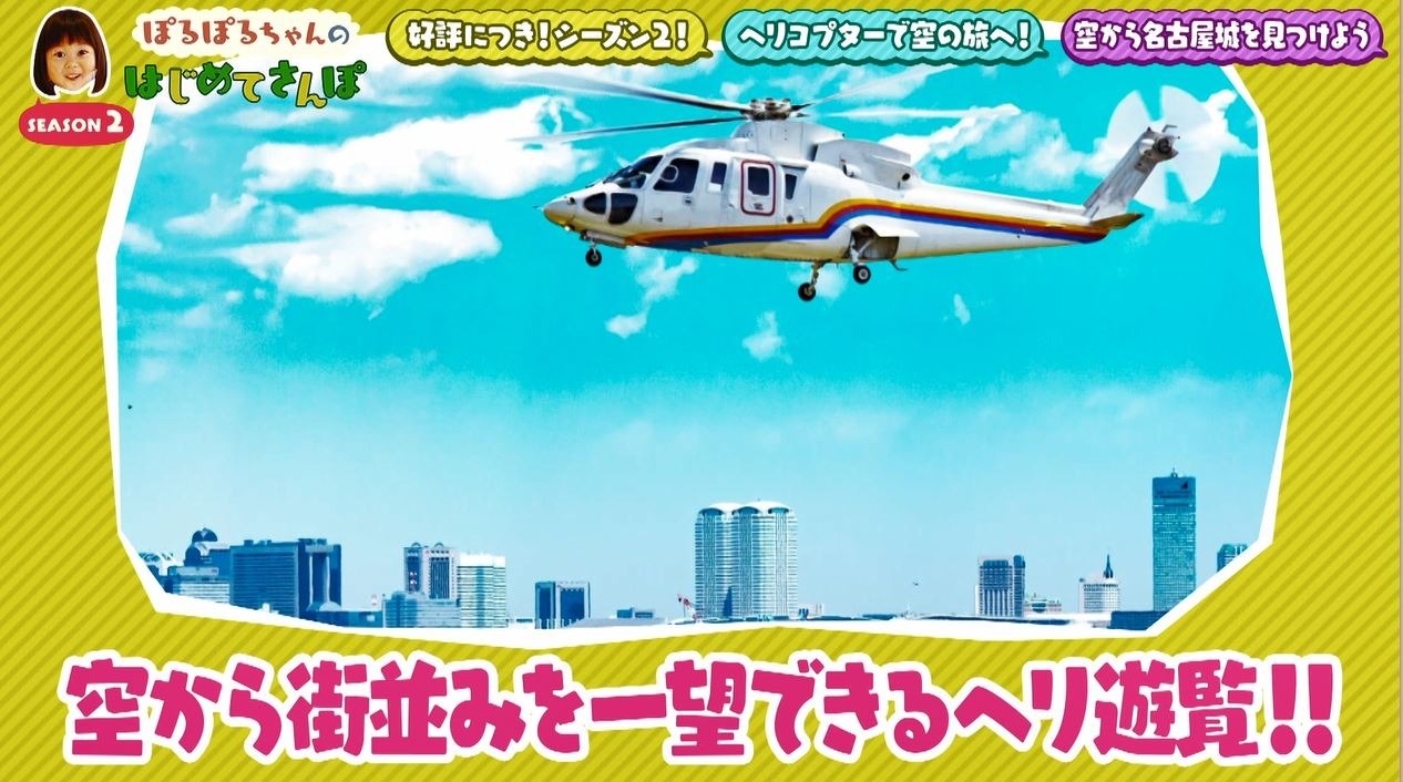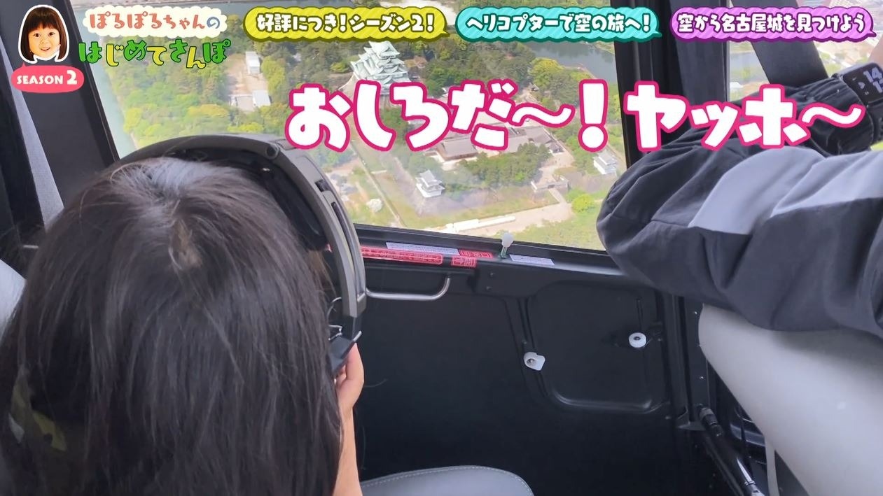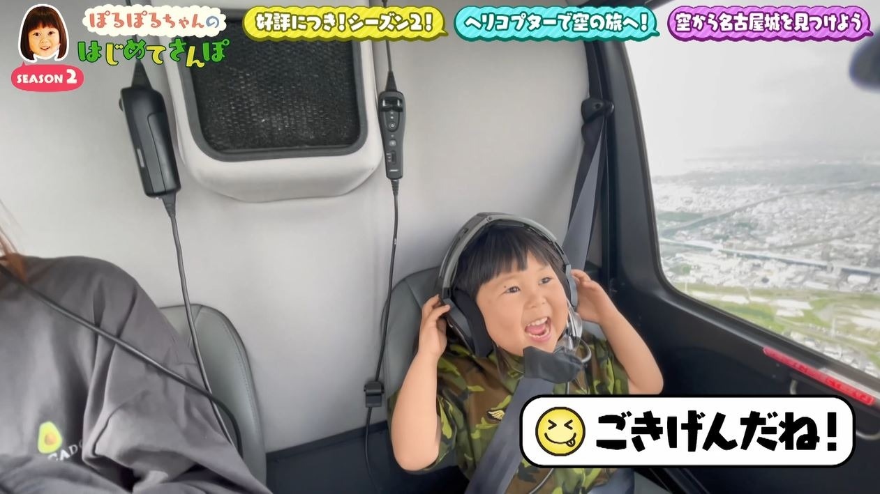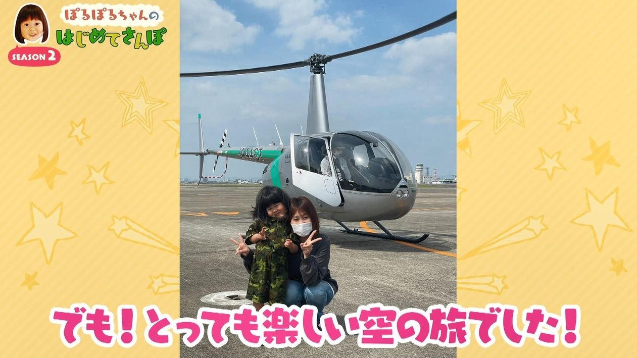 空から街並みを一望できるヘリ遊覧。ヘリコプターにはじめて乗るぽるぽるちゃんはワクワクが止まらない様子ですが、ここである事実が発覚!