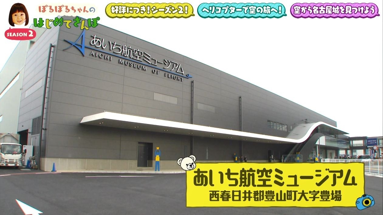 待ち合わせは愛知・豊山町の『あいち航空ミュージアム』。主役のぽるぽるちゃん、元気いっぱいに走って登場!あまりの勢いにカメラに激突寸前です。