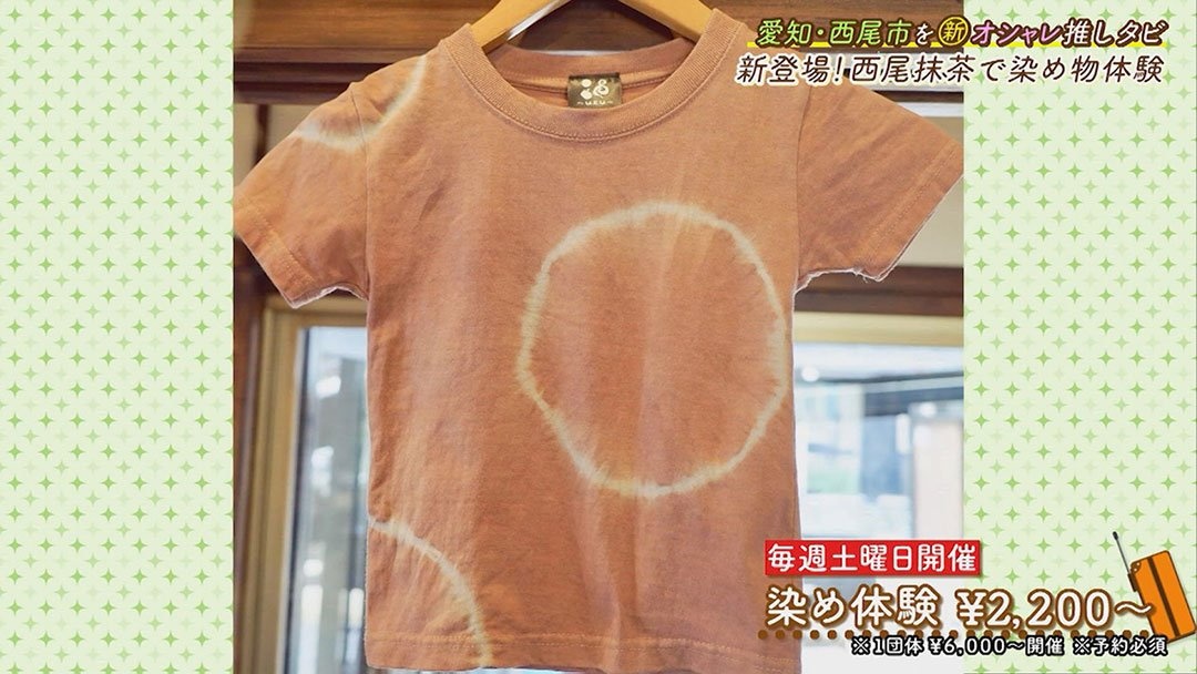 店舗では販売の他に、毎週土曜日開催の様々な「染め体験」(2200円~ ※1団体600円~開催/要予約)が大人気!世界にたった1枚のオリジナルTシャツやハンカチなどが作ることができます。さらに4月からは新コースが始まり、3人が体験してみることに。それは「西尾産の抹茶を使った染め物体験」です。