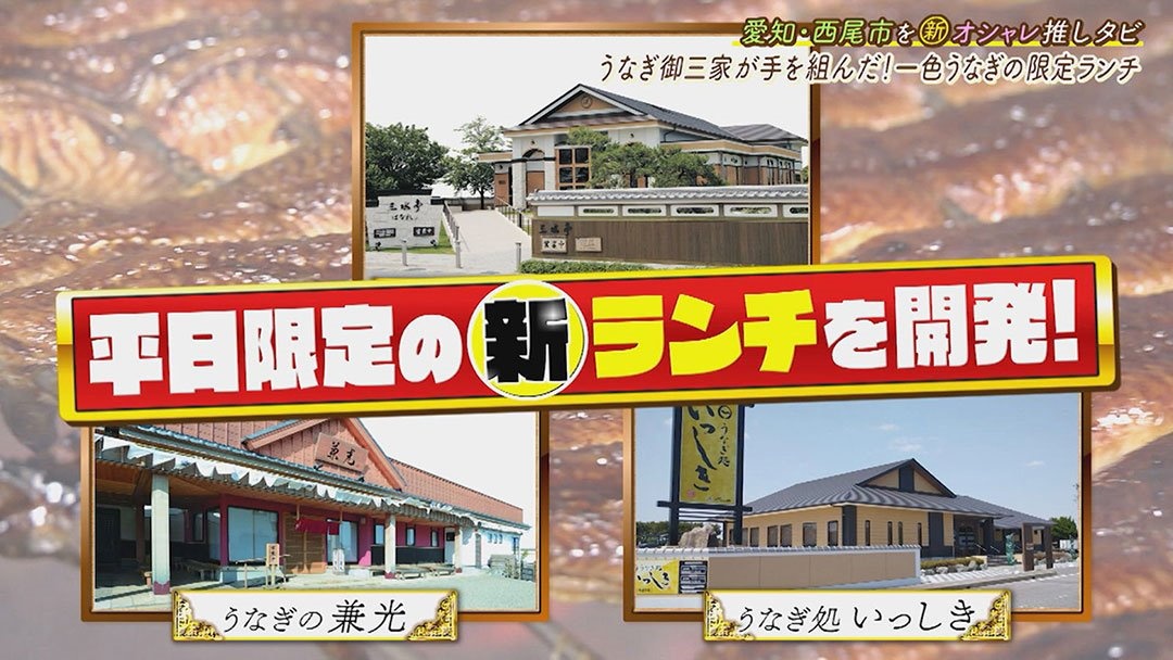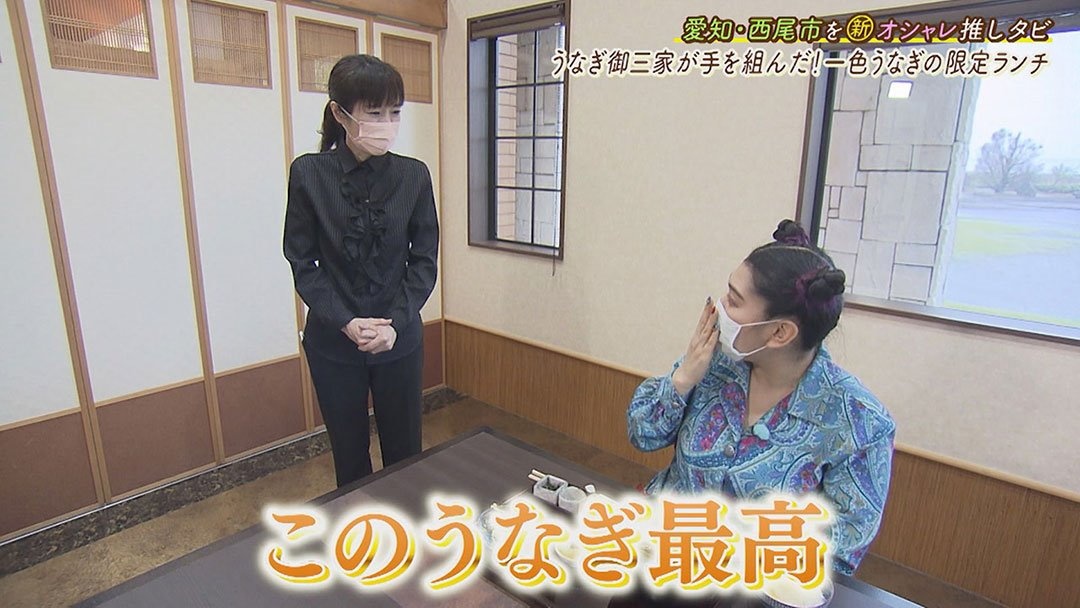 うなぎ養殖が盛んな西尾市一色町。3人が向かったのは“一色うなぎ"の名店『うなぎ割烹 みかわ三水亭(はなれ)』です。なんでも地元産のうなぎを盛り上げようと、“うなぎ御三家"と呼ばれる西尾を代表する名店3店がタッグを組んで、平日限定の本格ランチをそれぞれがお値打ちに考案したとか。