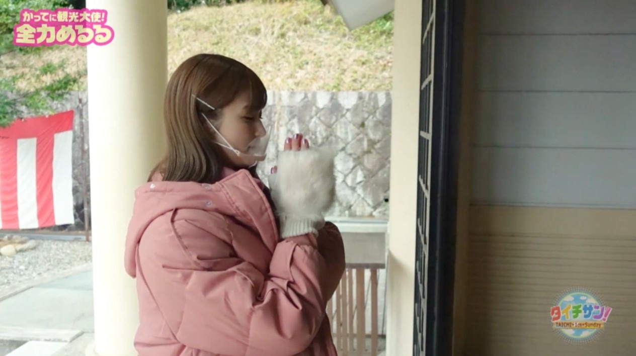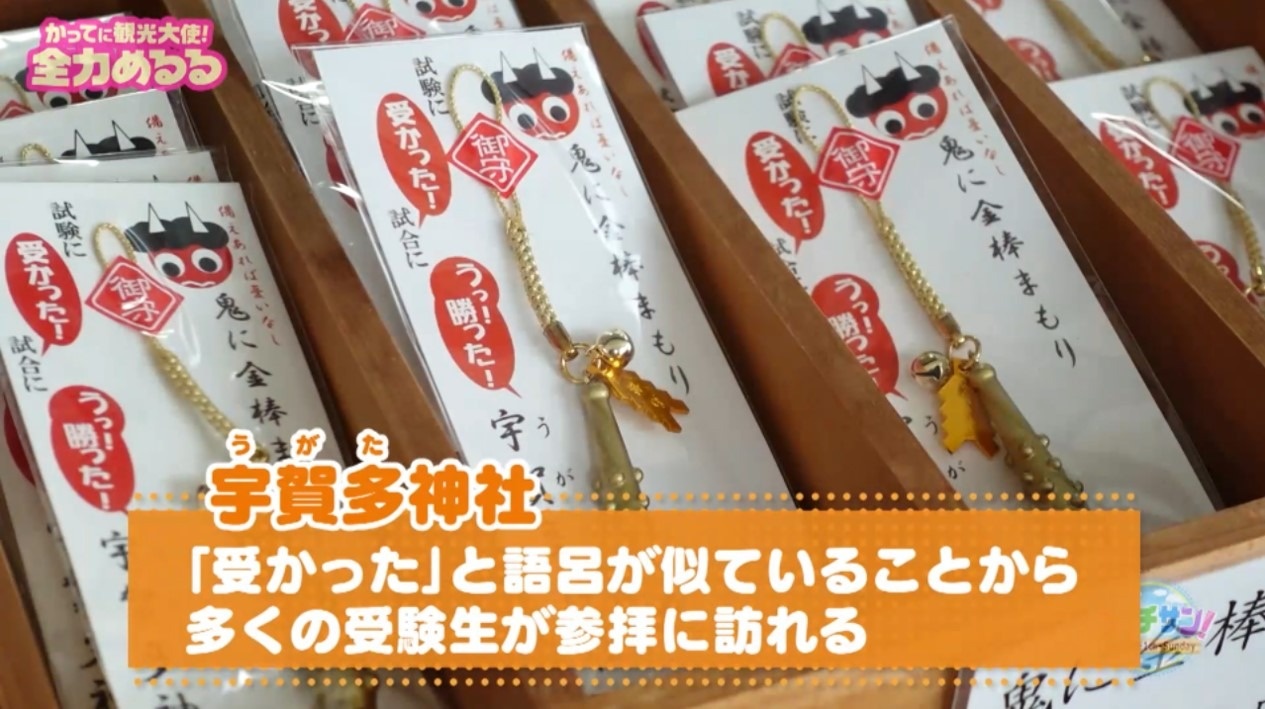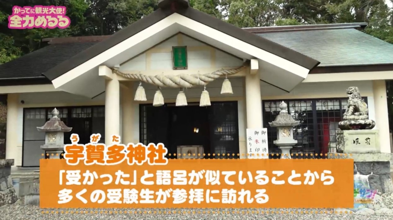 きょうの目的地に行く前にめるるが「気になる場所がある」とやってきたのは、『宇賀多(うがた)神社』。“受かった”と語呂が似ていることから多くの受験生が参拝に訪れるそうで、全国の受験生に代わって、めるるがお参り。
