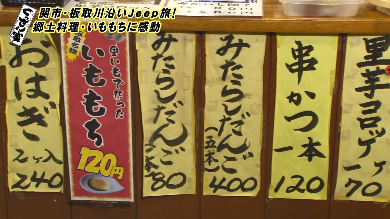 店内に入ったぐっさん「うわー!いいですね。このラインナップ!五平餅、里芋コロッケ、そしていももち!」とテンションUP!さっそく看板メニューの『いももち』をいただきます。