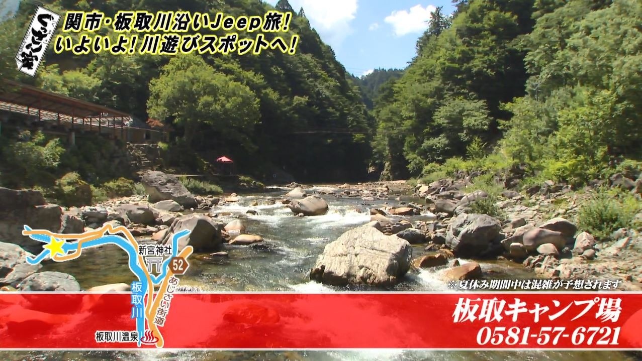 今回(2021年8月7日放送)は『ぐっさん!関市板取川で遊ぶ旅!』。岐阜県関市を流れる板取川は東海地方屈指の清流として抜群の透明度を誇る美しさ!愛車のJeepで板取川沿いをドライブし、大自然が織りなす夏ならではのアクティビティを満喫します。