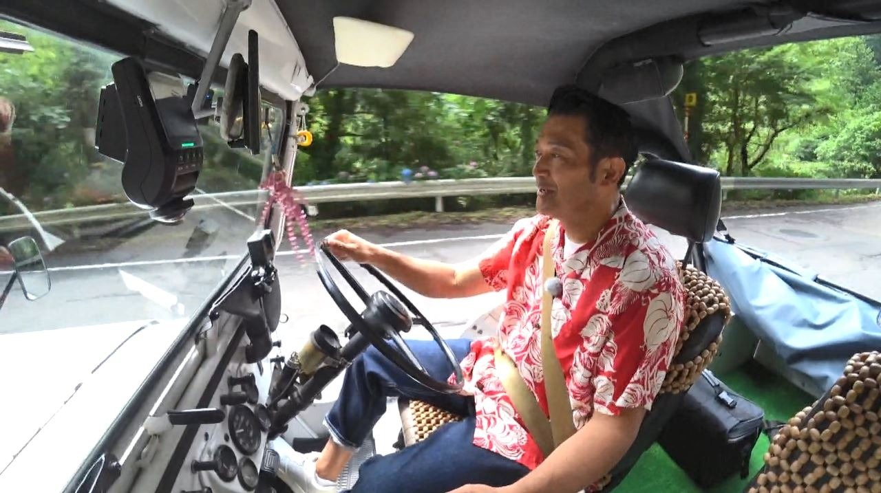 今回訪れたのは名古屋から車で約1時間の岐阜県関市。スタートは愛車のJeepの車内から!ドライブ中も清流・板取川を眺めながら「サントップの横から入ってくる山の空気がうまいなー!」とごきげんのぐっさん。