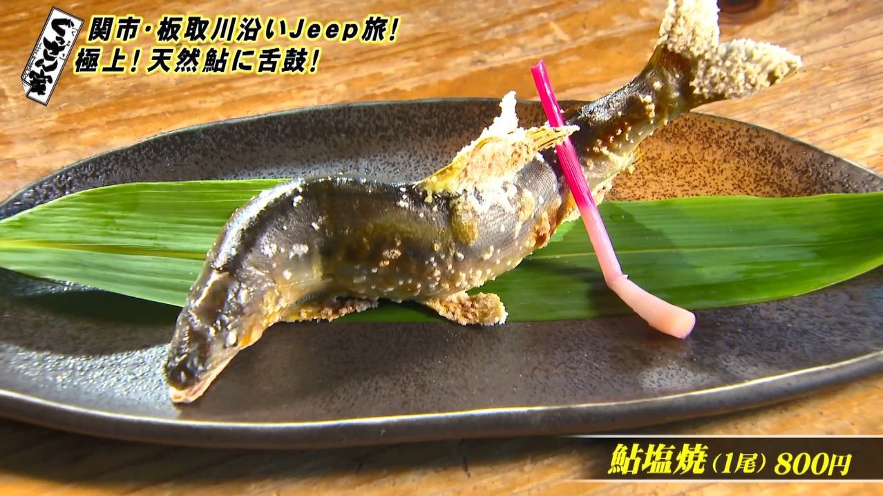 この時季食べておきたいのはやっぱり”鮎”!ということで、まずは『鮎塩焼』(1尾 800円)をいただきます。透明度が高い板取川の天然鮎は身が締まり、香魚ならではの爽やかな香りが…夏ならではの清流のごちそうです。