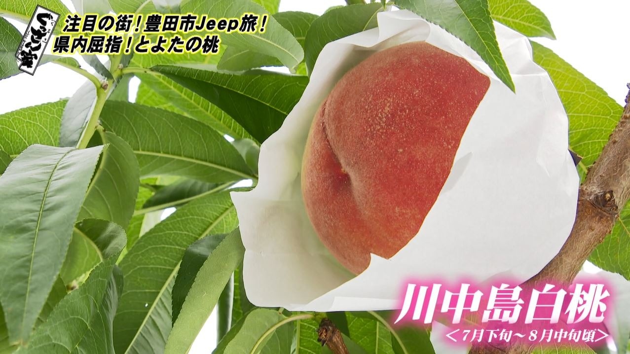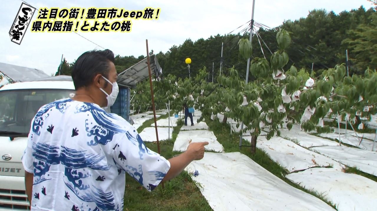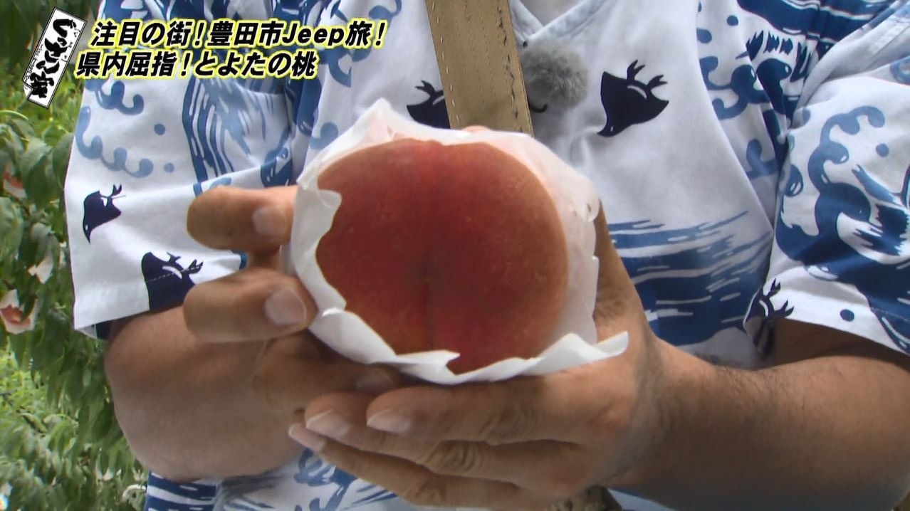 Jeep を走らせ続いて向かうのは、収穫期を迎えている桃畑。実は豊田市は愛知県でも屈指の桃の産地!味はもちろん品質も高く『とよたの桃』として評判です。