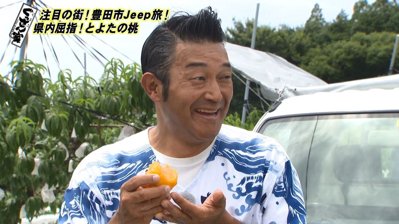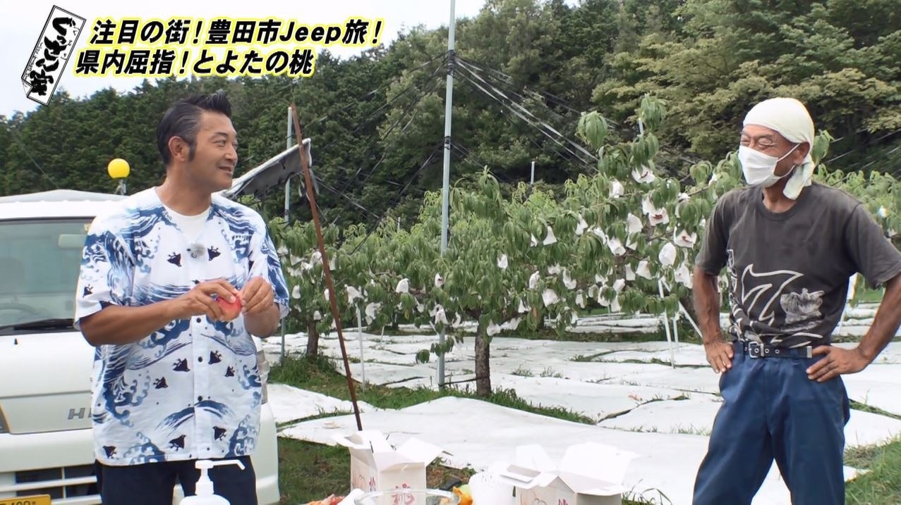 「一気に桃 2 つ丸々食っちゃうんだもんな」と桃農家の森さんもぐっさんの食べっぷりに驚き!豊田市が誇る旬の桃を心行くまで堪能しました。