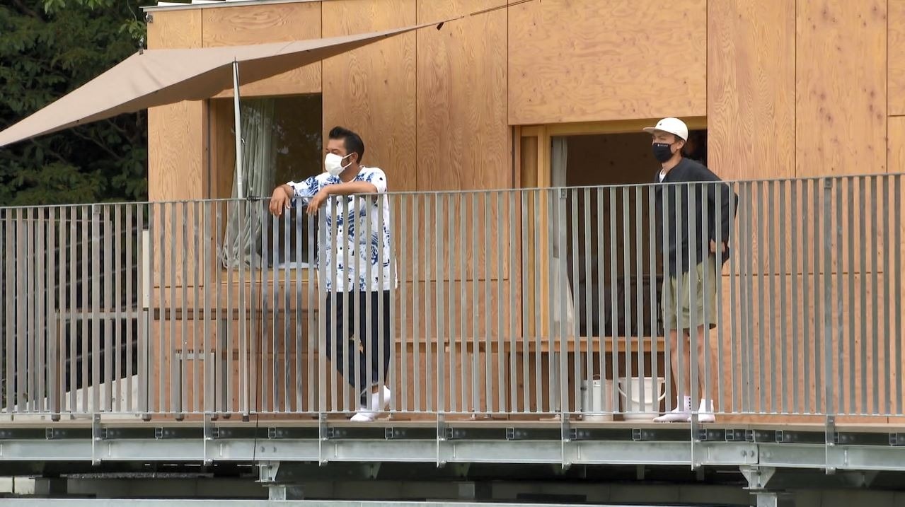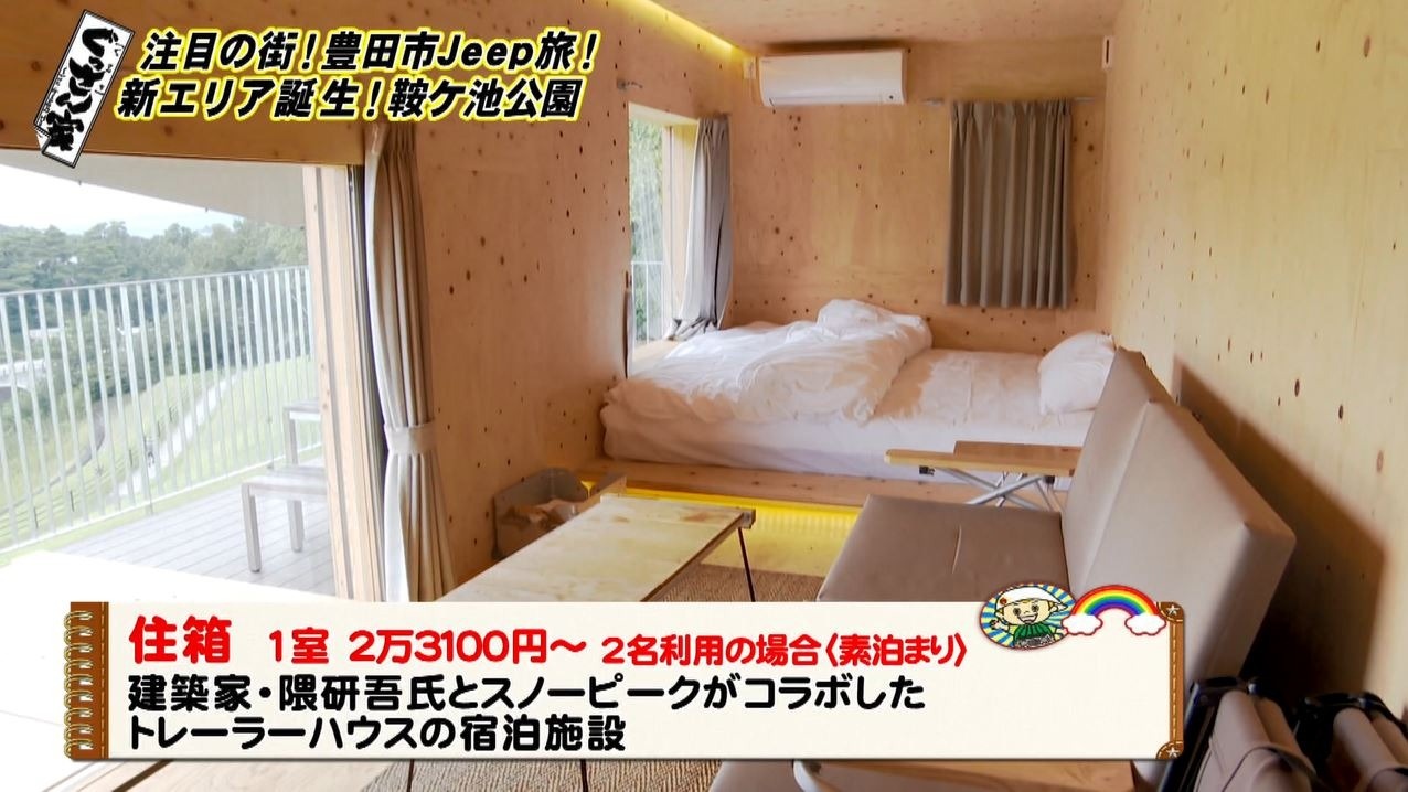 宿泊施設の名前は『住箱』。「住む箱で『住箱』!いいよ、いいよ。すごいよ!」と興奮気味のぐっさん。『住箱』は新国立競技場を担当した建築家・隈研吾さんが設計した木製トレーラーハウスで車輪がついていて移動もできるようになっています。