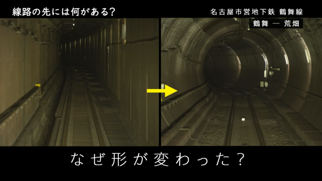 地下鉄鶴舞線のトンネルの形は四角形が基本。しかし、鶴舞駅を出発すると四角いトンネルの形が丸いものへと変わります。