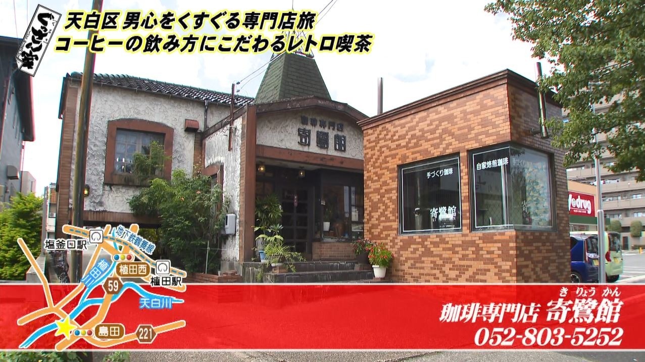 続いて訪れたのはコーヒー専門店の『寄鷺館(きりょうかん)』。創業は1975年、地元で長く愛される喫茶店です。歴史を感じる外観に「うわー渋い!なんかアジトっぽくていいですね」とワクワクしながら店内へ…