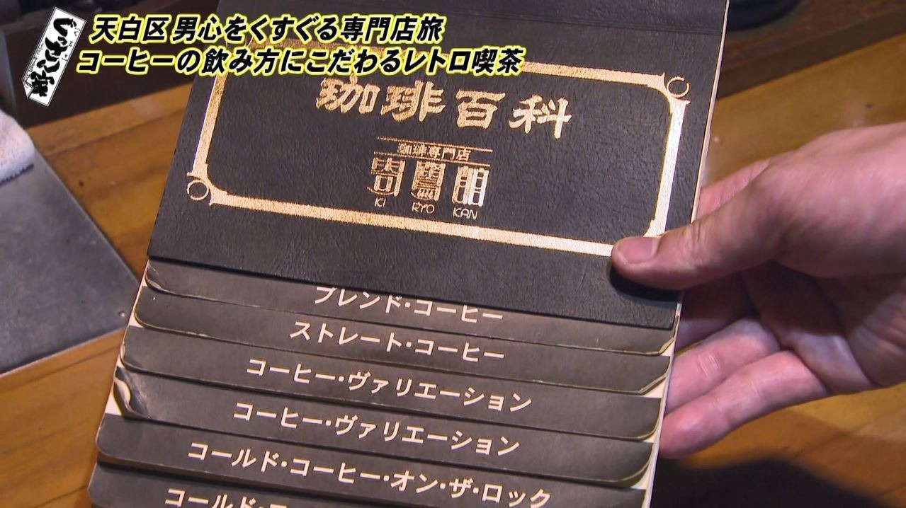 こちらのお店では、なんと50種類以上のコーヒーが楽しめるということでメニューを見せていただくと…こちらもとってもレトロ!ぐっさんも「昔の電話帳みたいな…渋いなこのメニュー」と興味津々。