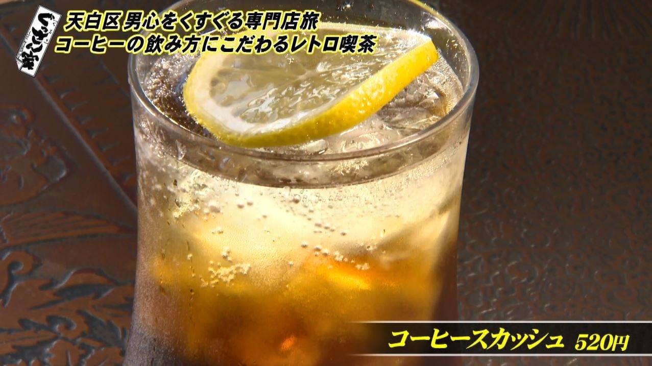 「あっ!うまいなー。炭酸の奥にちゃんとコーヒーを感じるんですね、おいしい、おいしい!」と新たなコーヒーの楽しみ方を発見!レトロな喫茶店で至福の時間を過ごしました。