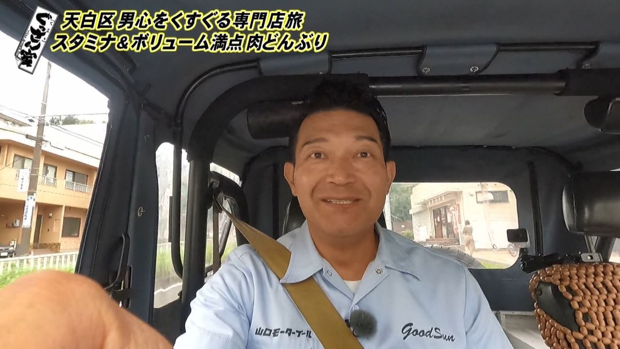 学生街でありながらファミリー層も多く住む天白区には男性の心に響く、個性豊かなスポットがいっぱい!「男心くすぐらせてもらいますよー」と意気込むぐっさん。まずは腹ごしらえ!ということで愛車のJeepで向かいます。