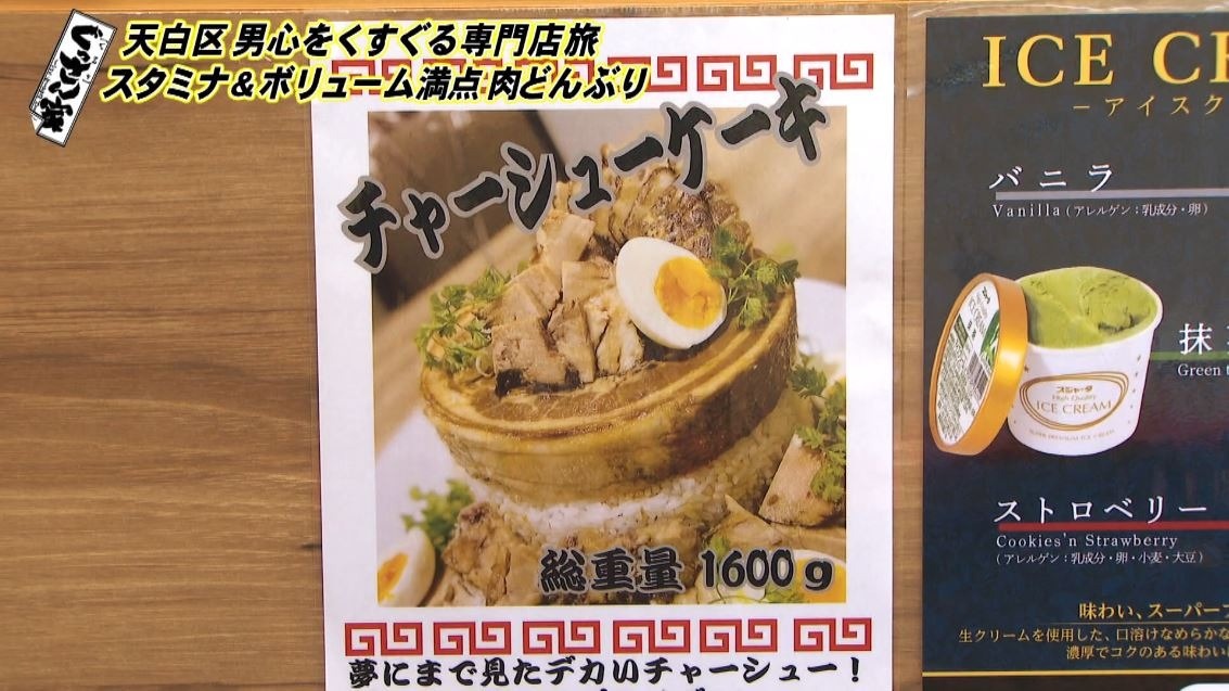 「うわー!リーズナブル!」と驚くぐっさん。店内にはオリジナルのメニューがいっぱいで「なにこれ?『チャーシューケーキ』って?」と魅力的なメニューに目移りします。