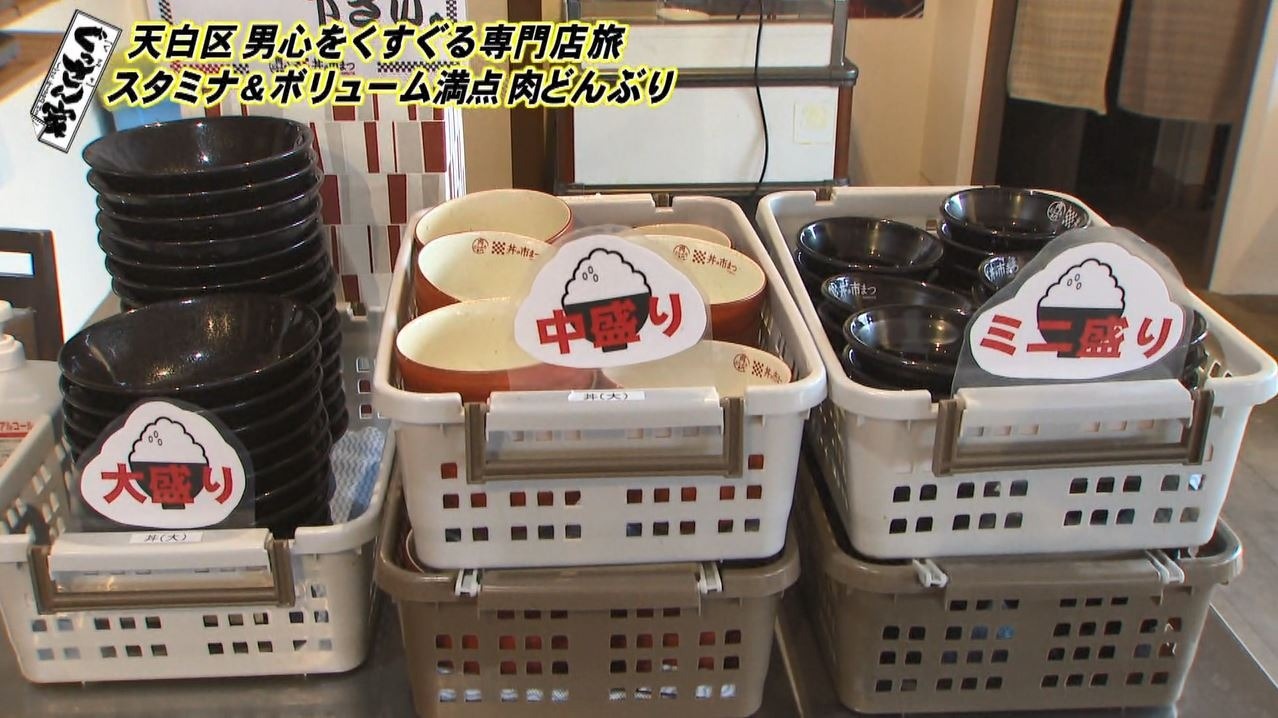 こちらのお店は最初に丼のサイズを選び、自分で好きなだけご飯をよそった後、お店の方にお肉を盛ってもらい丼が完成するというシステム。しかも、ご飯はおかわり自由と、なんとも男心をくすぐるサービスです。