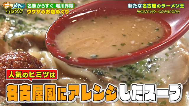 堀川界隈で最後に巡るのは『名古屋の新たなラーメン王がいるらしい』というウワサ。ネットでも「新しい名古屋めしに決定!」「毎回スープまで完食しちゃいます!」と大評判となっているお店があるんだそうです。