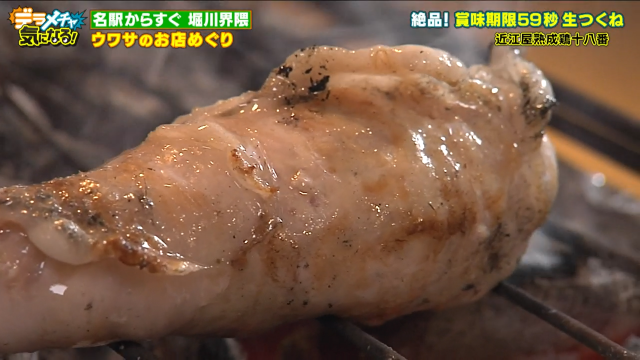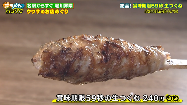 焼き鳥屋激戦区である堀川界隈の中で、インパクトのある商品で戦って行こうと生まれた『賞味期限59秒の生つくね』。他のお店では味わえない体験にはるなも村上も驚いていました。