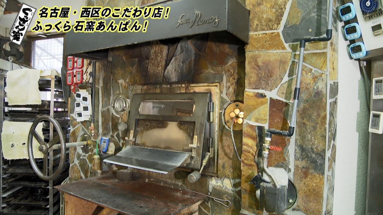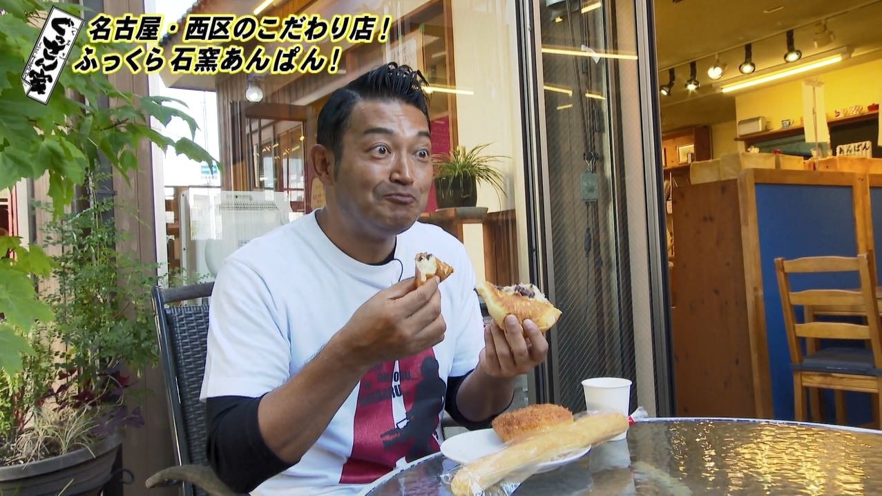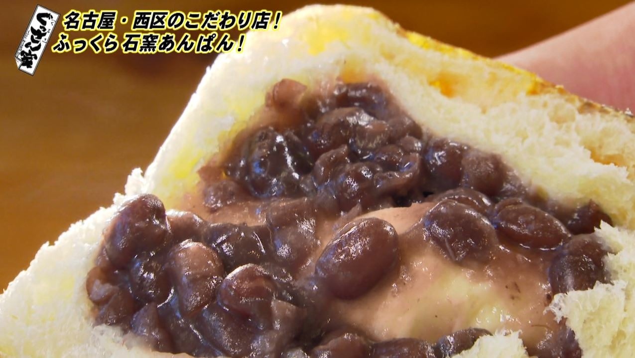 その石窯から出てきたのがお店の名物・石窯あんぱん。「うわ!めっちゃデカイ」と驚くぐっさん。あんには北海道十勝産の小豆をたっぷり使用し、水分多めのもっちりとした生地で包んでいます。高温の石窯で焼き上げることで香ばしさとフワフワを兼ね備えた絶品あんぱんが完成します。