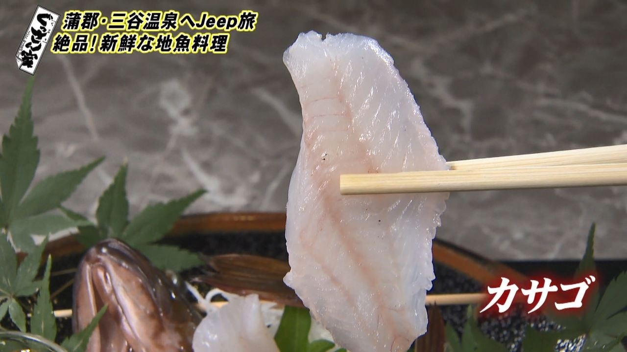続いてはカサゴ。煮付けや唐揚げで出されることが多く、ぐっさんも「なかなかカサゴの刺身ってあがらないですよね」と驚き!「すごいサッパリした身で歯ごたえもしっかりあって、これたまらんね。カサゴ旨いわ!」と珍しい刺身をじっくり味わいます。