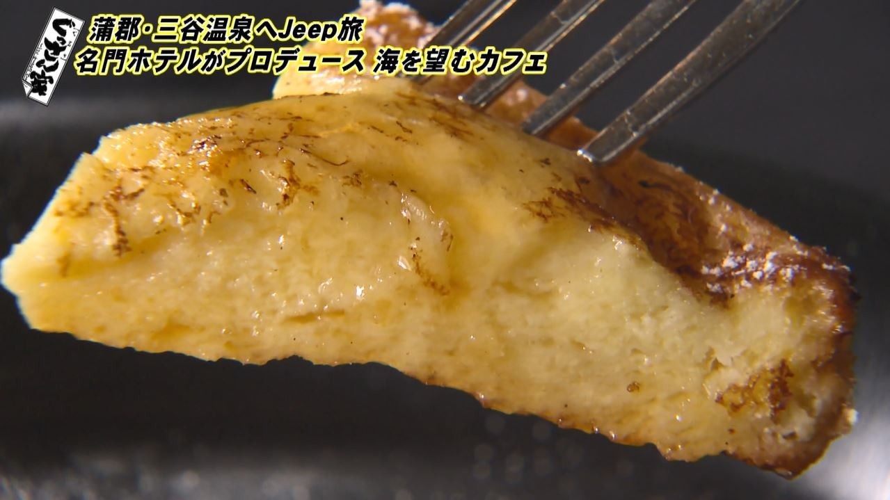 ぐっさんが注文したのは『フレンチトースト』(700円)と『アイスコーヒー』(420円)。フレンチトーストに使われているのは毎朝ホテルで焼き上げる自家製の食パン。愛知県産の小麦を独自の配合でブレンドし、ふんわり、もっちりとした食感になるよう焼き上げています。そこに卵をたっぷりと染みこませて焼いた逸品です。