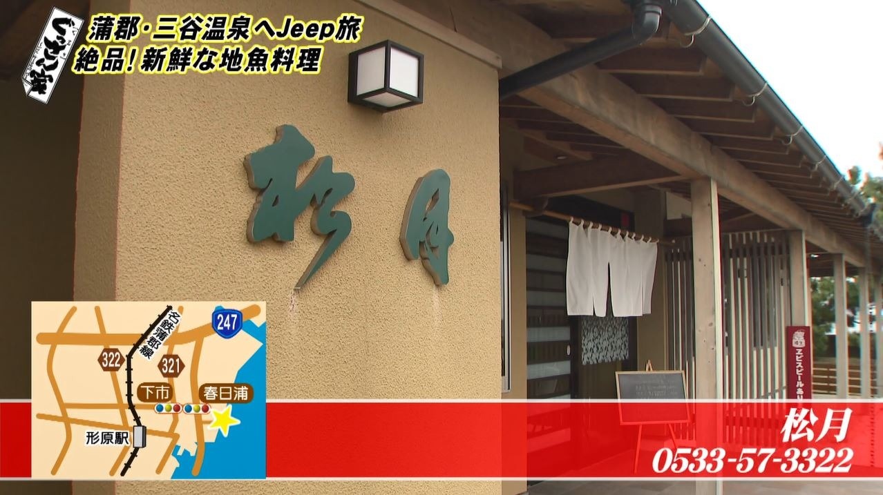 はじめにやってきたのは三河湾の新鮮な海の幸をいただけると評判のお食事処『松月』。お店は海のすぐ近く!海が大好きなぐっさん「すっごいいいところにありますね」とテンションが上がります。