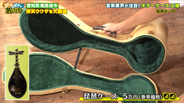 日本でギターケースを製造している会社は4~5社あるそうですが、そのうち木製のケースを製作しているのは『岩本ケース』だけ。主にギターメーカーからの依頼で完全オーダーメイドで製作されており、どんな形の楽器にも対応でき品質にも優れていることから、「一回買ったら一生使える!」と国内はもちろん海外のアーティストからも絶大な支持を得ています。南こうせつやゆずも愛用しているんだとか。
