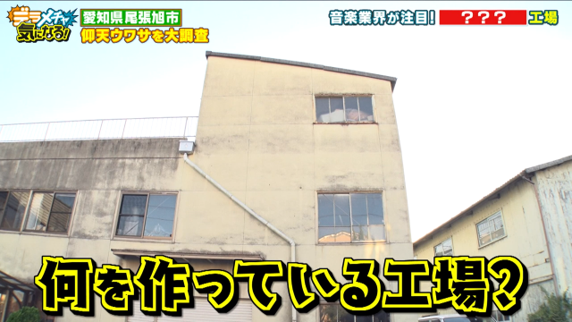 尾張旭市で最初に検証するのは「大物アーティスト御用達の工場があるらしい」というウワサ。何でも尾張旭には日本唯一のあるモノが作られていると聞き、はるなと村上が早速ウワサのスポットへ向かいます。