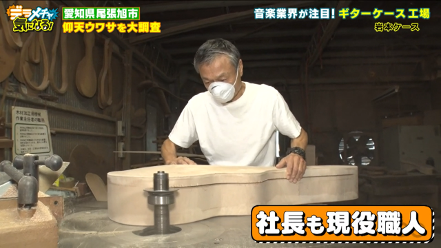 尾張旭の住宅街にあるこちらの工場はギターを中心に木製の弦楽器ケースを作っている『岩本ケース』。創業70年を数える老舗メーカーなのですが、ご近所さんからも何を作っている工場なのかあまり知られていないそうです。